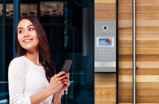Вызывное устройство на общей двери позволяет связываться с жильцами с использованием аудио и видеосвязи.